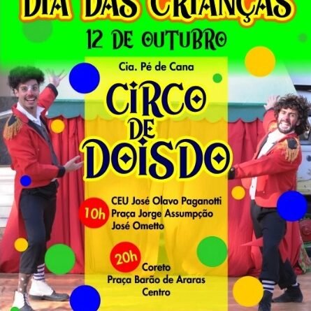 Para comemorar o “Dia das Crianças”, a Agenda Cultural, organizada pela Secretaria Municipal de Cultura, irá promover neste domingo (12), duas sessões do espetáculo circense “Circo de Doisdo”.