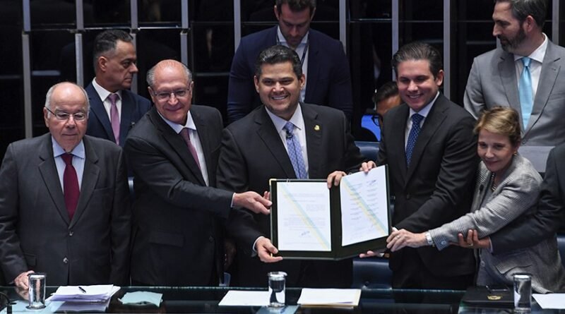 Ao assinar o decreto que ratifica o acordo comercial no Brasil, o presidente do Senado e do Congresso, Davi Alcolumbre (União-AP), apontou que o acordo envia um sinal claro em defesa da paz e da prosperidade no momento em que o mundo sofre com guerras e tensões comerciais.