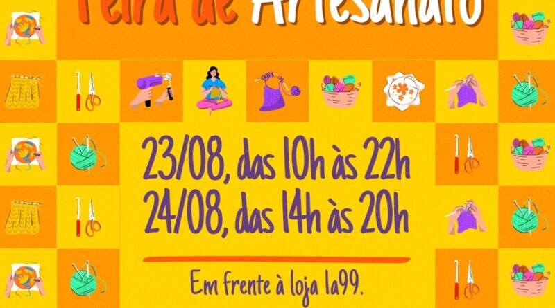 A Feira de Artesanato acontece neste sábado (dia 23), das 10h às 22h, e continua no domingo (24), das 14h às 20h. Os produtos estarão expostos na Praça de Eventos 2, em frente à loja 1A99.
