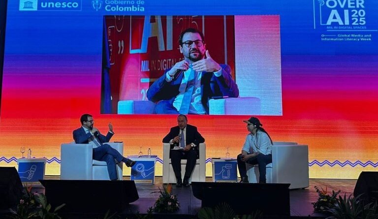 Os avanços brasileiros em educação midiática estiveram em destaque na Global Media and Information Literacy Week 2025, conferência mundial da UNESCO realizada em Cartagena, na Colômbia, entre os dias 22 e 25 de outubro. A delegação brasileira apresentou as principais políticas e experiências nacionais no tema, reforçando o compromisso do país com a construção de um ecossistema informacional mais democrático, confiável e participativo.