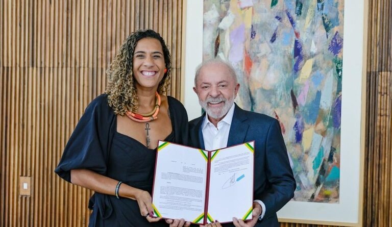 AVANÇO E ESTRUTURA – Para Anielle Franco, os textos oficializam um trabalho que, além das titulações, busca garantir estrutura aos povos quilombolas. “A gente sai daqui com esse avanço de territórios quilombolas, primeiro por conta das titulações, dos decretos, mas também porque a gente chega ali com estrutura, de acordo com o que cada localidade precisa, como a gente tem feito desde 2023. Esse marco, de cuidar dos territórios quilombolas, assim como foi feito na COP com as terras indígenas, é motivo de orgulho. Um dos títulos que estão prontos é o de Alcântara, que estava ali naquele conflito de 40 anos, e estamos mais próximos de titular”, afirmou a ministra.