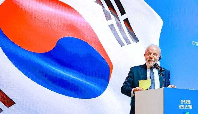 MERCOSUL — Durante a declaração à imprensa, Lula também ressaltou a intenção da Coreia do Sul de retomar as negociações para um acordo comercial entre o país asiático e o Mercosul. “Esse acordo estava parado desde 2021. Eu lembrei a ele [Lee Jae-Myung, presidente da Coreia do Sul] que era muito importante, neste instante em que se discute a volta do unilateralismo, voltarmos a discutir esse acordo. Ele se mostrou muito interessado. Vamos montar as comissões para começar a debater e, se tudo der certo, podemos concluir esses acordos este ano”, resumiu.