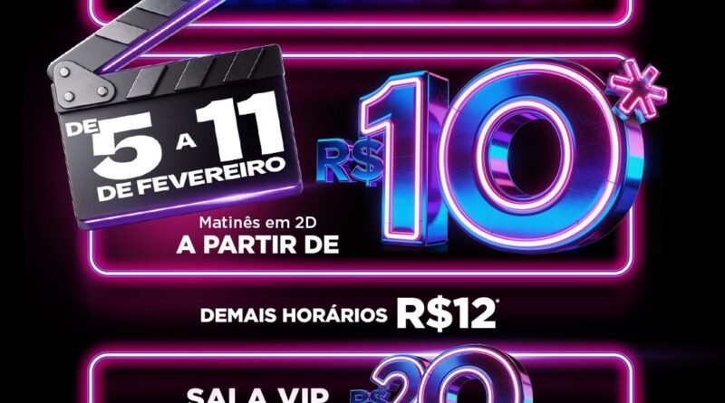 O Centerplex do Limeira Shopping participa, entre os dias 5 e 11 de fevereiro, da primeira edição da campanha “Semana do Cinema” em 2026. Quem é fã das telonas poderá curtir seu filme favorito por apenas R$ 10 nas sessões 2D iniciadas até 17h. Nos demais horários, o ingresso será de R$ 12.A “Semana do Cinema” é um sucesso por criar um preço único promocional ao longo de sete dias. O objetivo é democratizar, ainda mais, o acesso à cultura e ao entretenimento.A promoção é válida para as sessões ordinárias, inclusive finais de semana. A programação será variada, com longas nacionais e internacionais e títulos que prometem agradar a todos os tipos de público. A iniciativa não é válida para conteúdos alternativos, pré-venda e para o filme “Stray Kids: The DominATE Experience”.Para verificar os horários dos filmes, basta acessar o site: https://centerplex.com.br/cinema/limeira/ . A promoção é válida para sessões 2D e não inclui pré-estreias e pré-vendas.